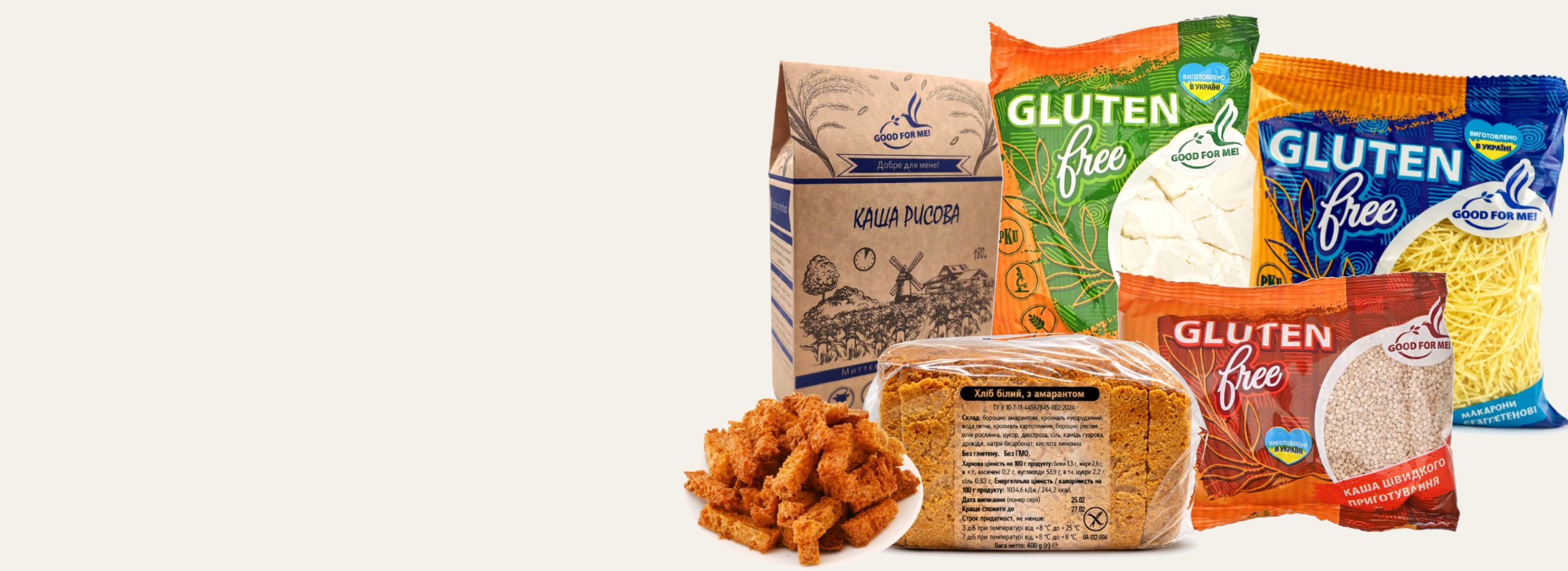 Good For Me — український виробник безглютенових продуктів для щоденного здорового харчування. Ми створюємо смачні та зручні у приготуванні продукти, які підходять людям з непереносимістю глютену, а також усім, хто обирає збалансоване харчування.